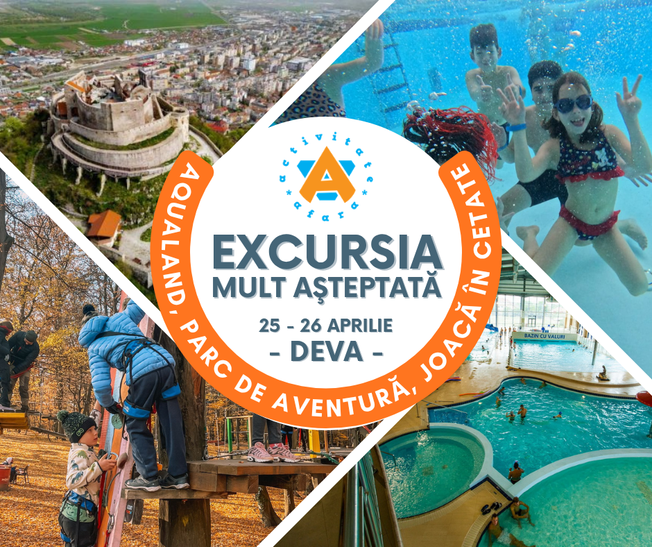 În weekendul 25 – 26 aprilie 2026 plecăm în singura excursie de 2 zile pe care o organizăm anual, la Deva. Aici vom petrece 2 zile pline de distracţie la Aqualand acoperit, vom transforma nou amenajata Cetate a Devei in locul nostru de joacă și ne vom depăși limitele la înălțime, în parcul de aventură Arsenal Park.